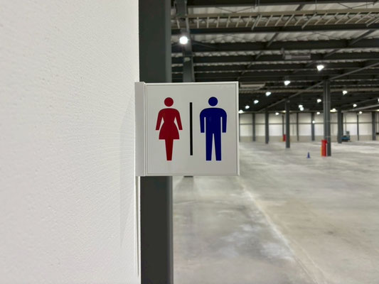 ピクトサインはアクリル板にマーキングフィルムを貼り、壁面にビス固定しました。