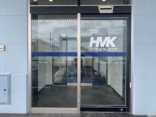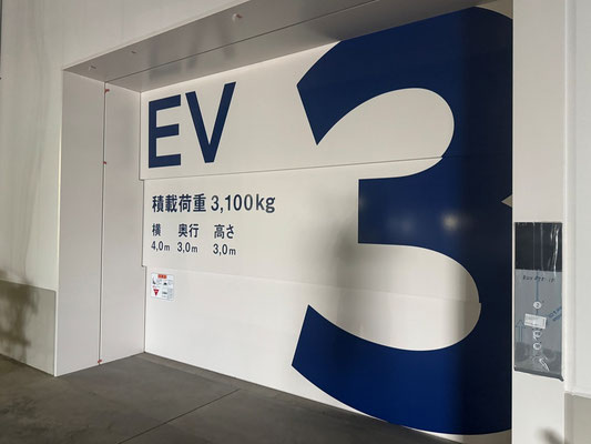 入口ガラス面、エレベーター扉面は共にマーキングフィルム貼り仕上げ。