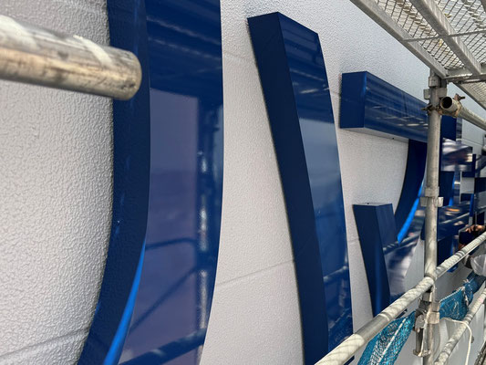 壁面チャンネル文字は大型の為、ケミカルアンカーを建物内部まで通し、Lアングルにて連結固定させ、ダブルナット固定。
