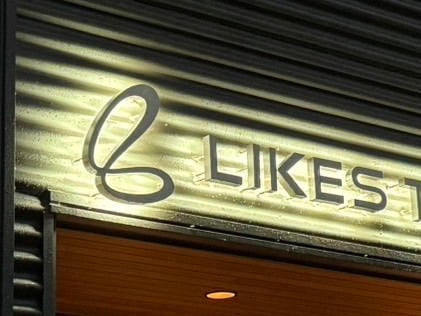 西面バックライト式チャンネル文字は壁面から50mmほど浮かしボルト出し取付。バックライトは箱文字内部にLED器具を接着固定しました。(背面アクリル板とカバーの分割仕様)