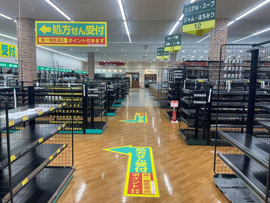 店内案内吊りサインは、組み立てたスチレンボードにインクジェット印刷シートを貼り、天井へワイヤー固定しました。