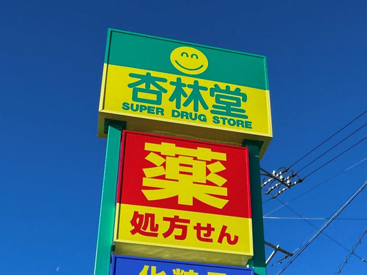 処方せん内照式サインは、アルミ材開閉式の枠を組み立て、内部にLEDを仕込み表示面のFFシートにマーキングフィルムを貼り、ITハンガーにて固定。